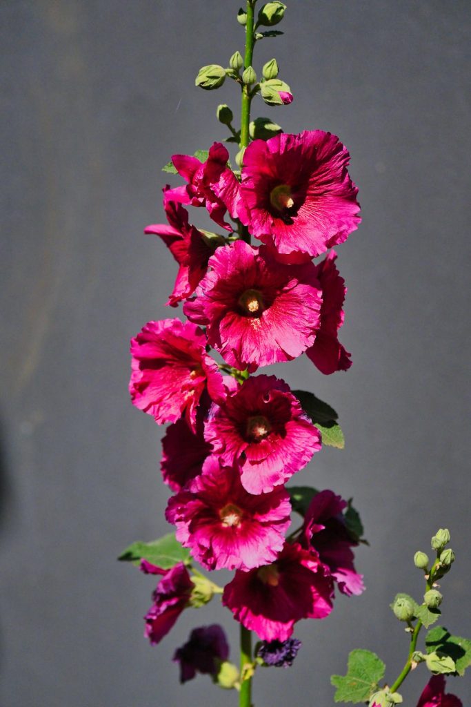 Hollyhocks lift big, saucer-like blooms up tall stalks, turning fences and shed walls into a cottage-garden backdrop. They often behave as biennials, so the first year is quiet and leafy, then the second year erupts in flowers.