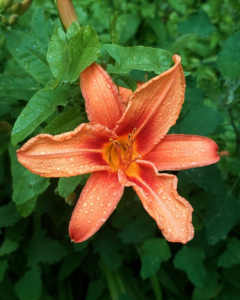 Orange daylily brings big, bright blooms that read cheerful from the street, even in rough soil and roadside heat. The flowers last a day, but new buds keep opening, and the plant looks dependable enough to tuck anywhere and forget.
