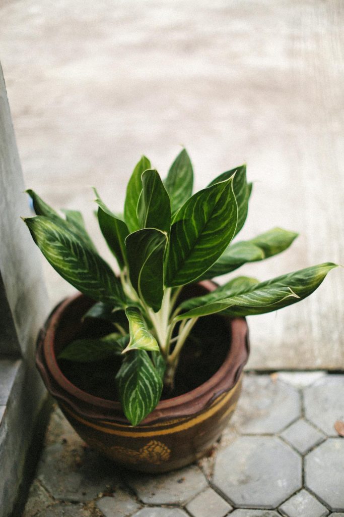 Chinese evergreen keeps color and pattern in rooms where most plants fade, with leaves that often show silver, green, and muted red tones. It tolerates low light well, making it a reliable choice for shaded apartments, offices, and north-facing corners.